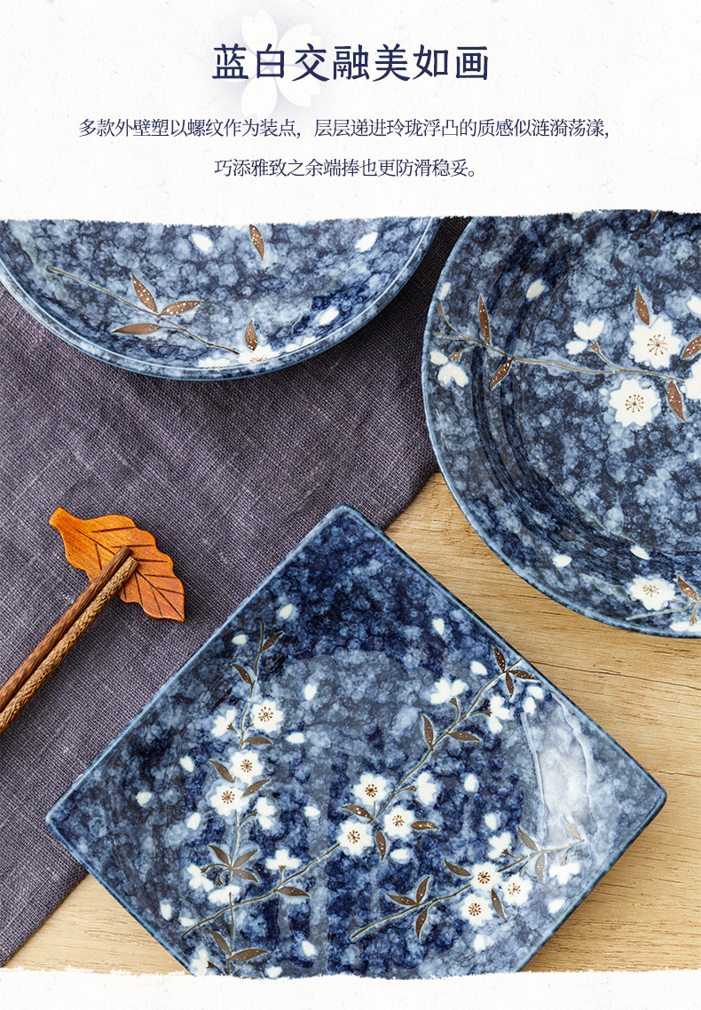 日本进口蓝樱花日式餐具和风陶瓷碗釉下彩菜盘子家用米饭碗汤碗面碗翘角盘17 2 8 图片价格品牌报价 京东